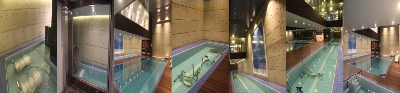 علاوه بر کاسه هاي آبي معمول اجراي راهروي 40 متري آب درماني به همراه آبشار و وسايل ورزشي داخل آب و اجراي 2 عدد تخت